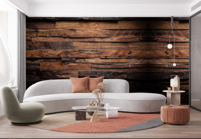Papier Peint Pré-encollé planches de bois sur Mesure